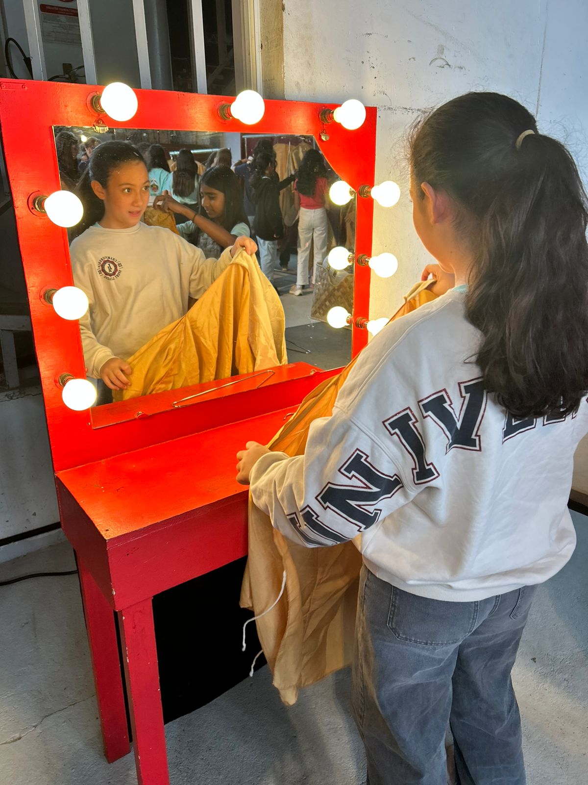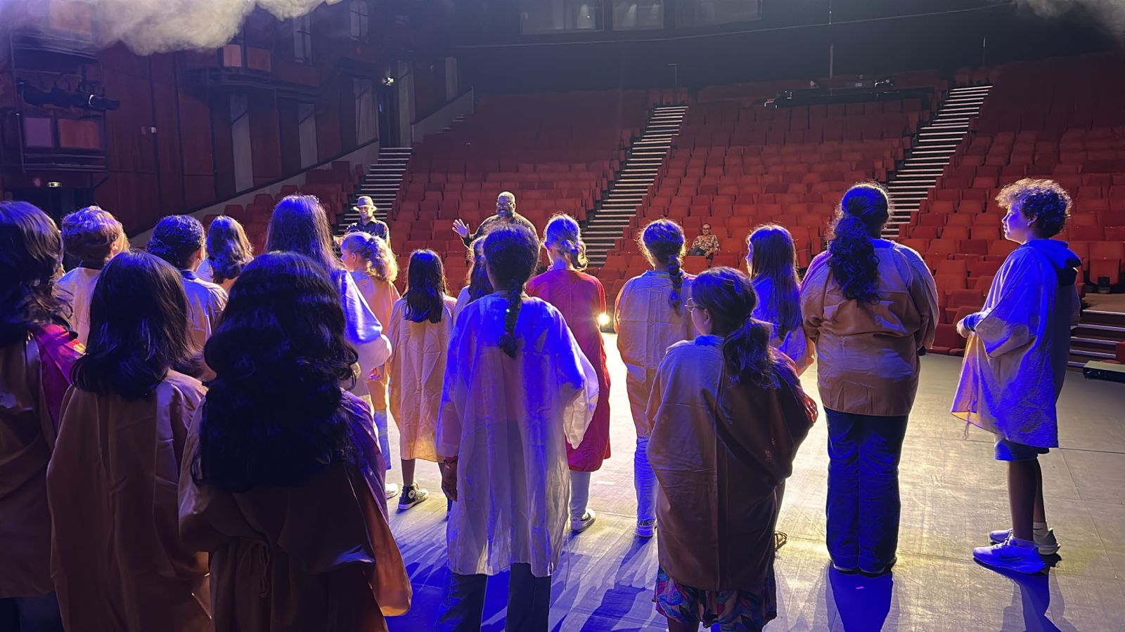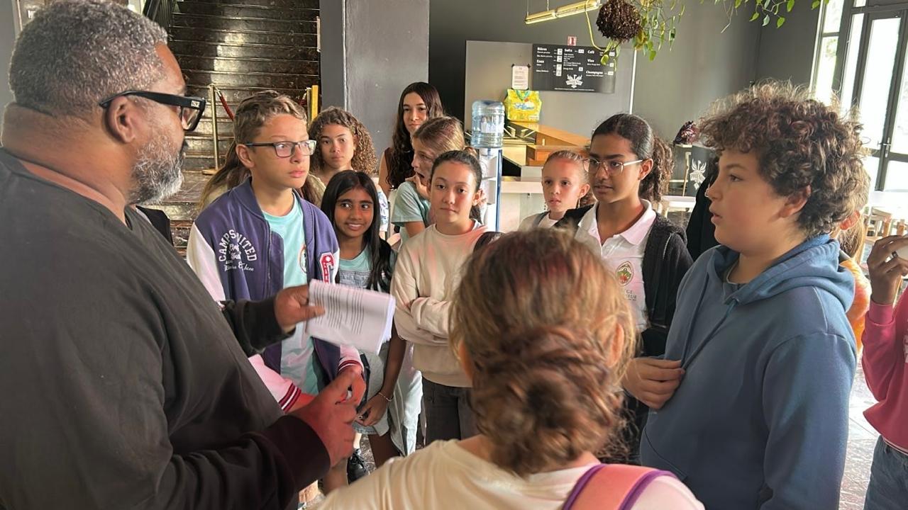 Ce jeudi 7 octobre, les élèves de » L’Entracte » (l’atelier théâtre du collège) se sont rendus au TÉAT Champ Fleuri à l’occasion d’une représentation originale « …Et puis ils ont dit : rideau ! », accompagnés par Mme Nativel et Mme Rougemont. Le spectacle a débuté dès le hall d’entrée, où les élèves ont été accueillis par l’artiste Vincent Fontano dans une atmosphère poétique et décalée. Nous avons déambulé dans les recoins du théâtre et même… sous la scène. Pour clôturer le spectacle, les élèves ont enfilé un costume et ont expérimenté la scène en foulant les planches du TÉAT Champ Fleuri. Une expérience inédite qui a motivé la petite troupe !